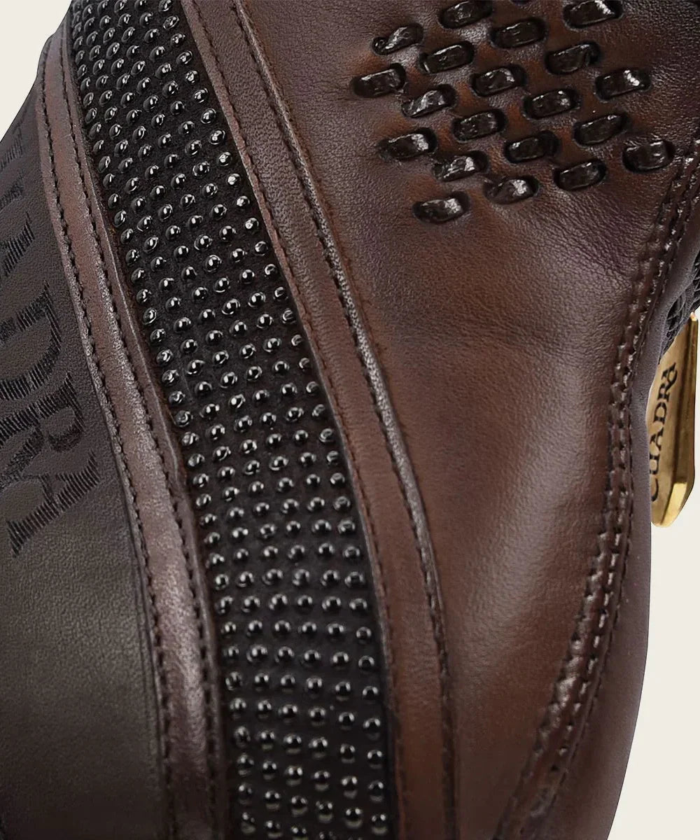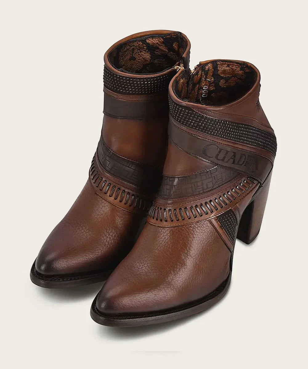 - These leather boots offer both an perfect fit and striking style. Thus, featuring exquisite details such as handmade fabric, Cuadra logo engraving, and eye-catching geometric motifs.