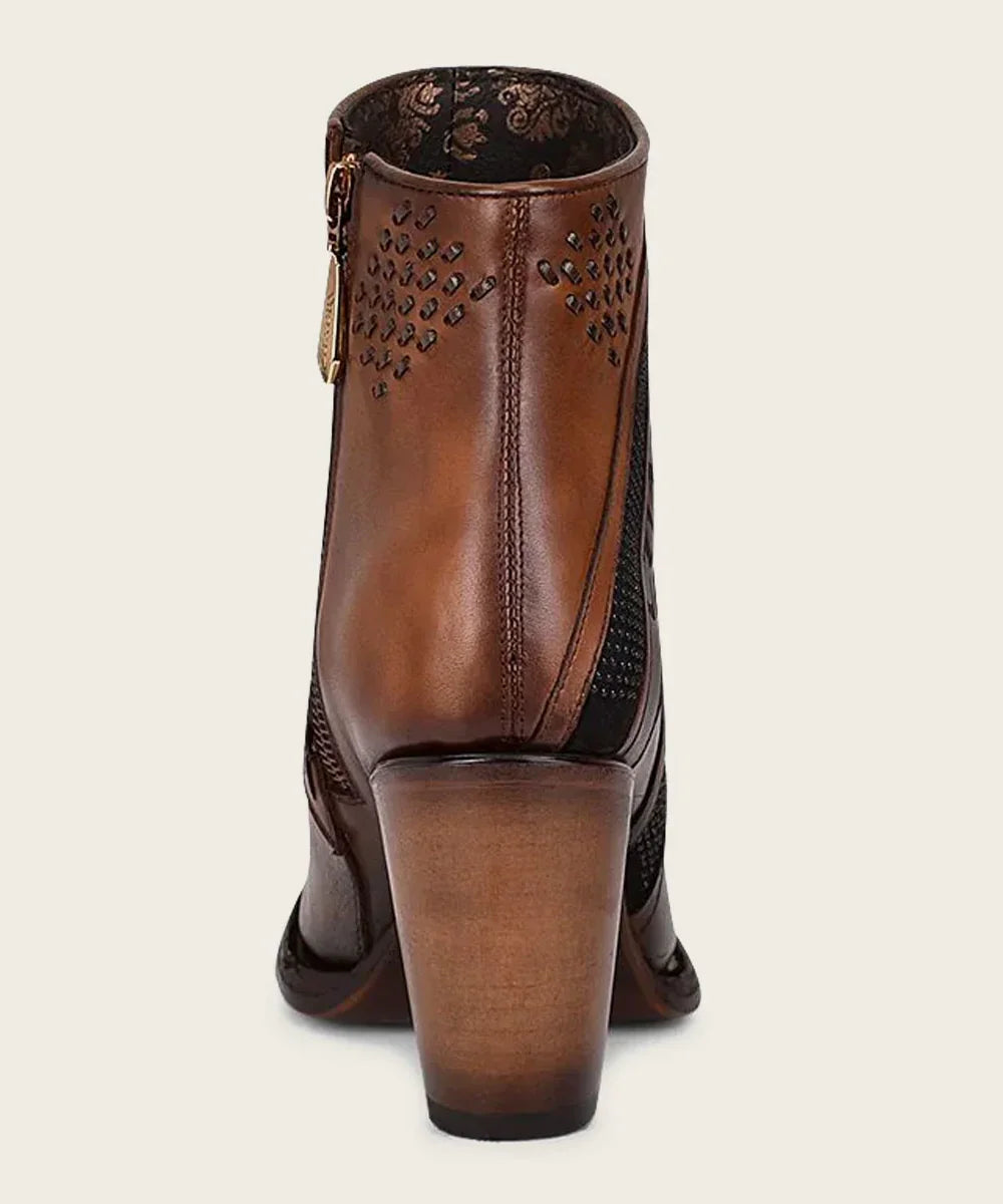 3F86RS Hand-Painted Brown Leather Ankle Bootie
