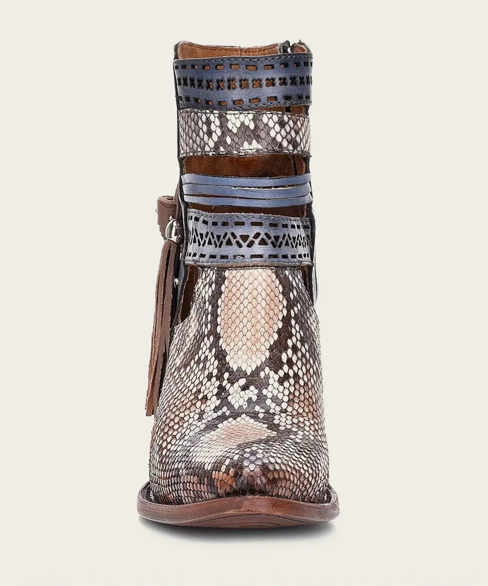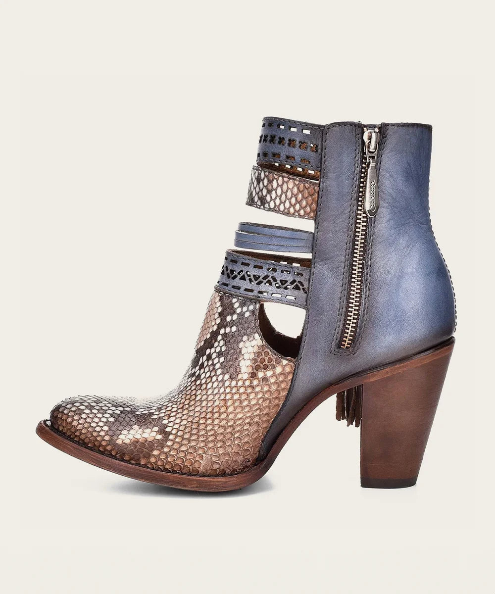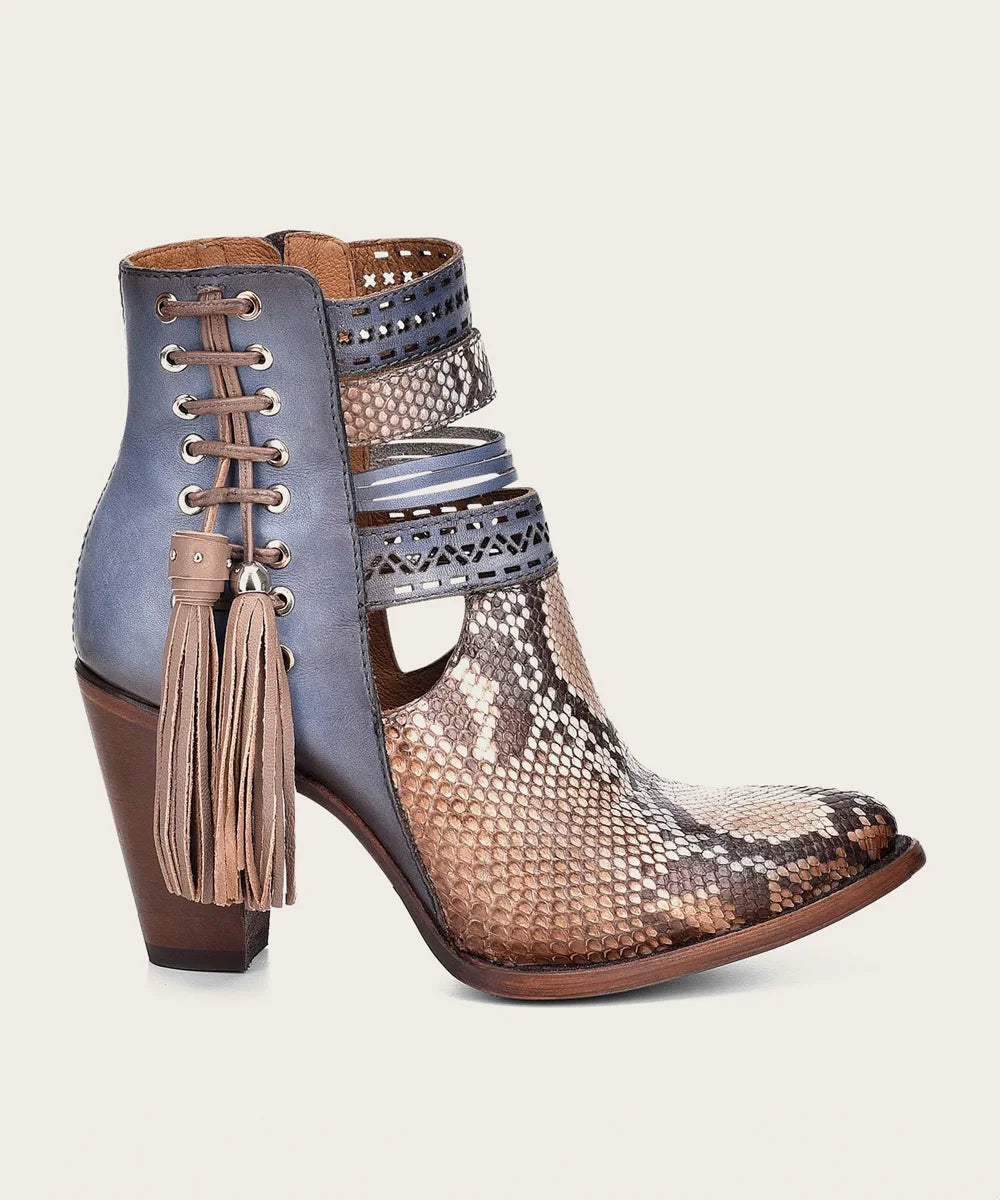 Discover the epitome of fashion-forward footwear with the Women Fashion Blue Leather Ankle Bootie. A luxurious masterpiece carefully crafted from genuine python leather. These boots exude sophistication and style, making them the ideal choice for any fashion-savvy woman.