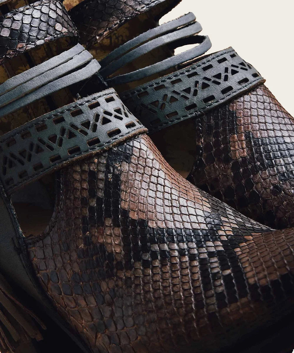 This leather booties are made from python leather, which is why it may show variations in color tone. Therefore, it may potentially appear darker than shown in the product photo.